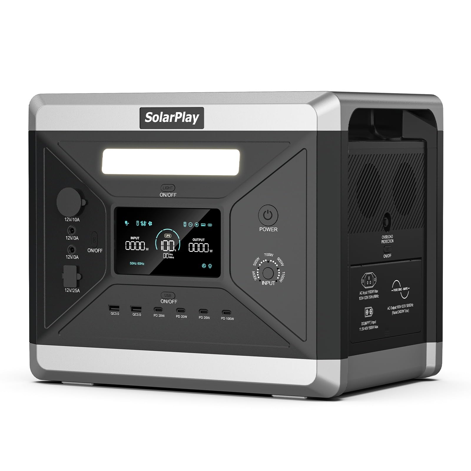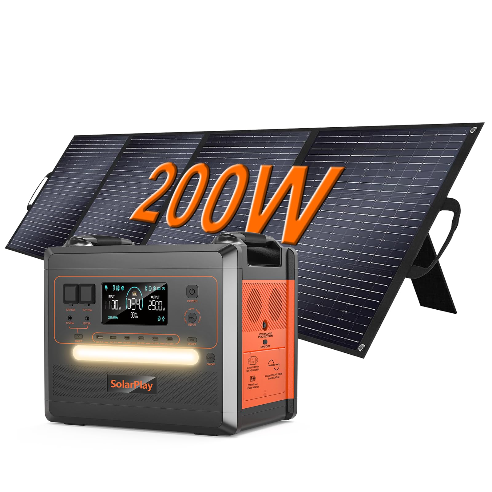 SolarPlay Q2402M tragbare Powerstation für Camping - 2500W Solargenerator mit 200W Solarpanel, 14 Ports und 1,5h Volllad